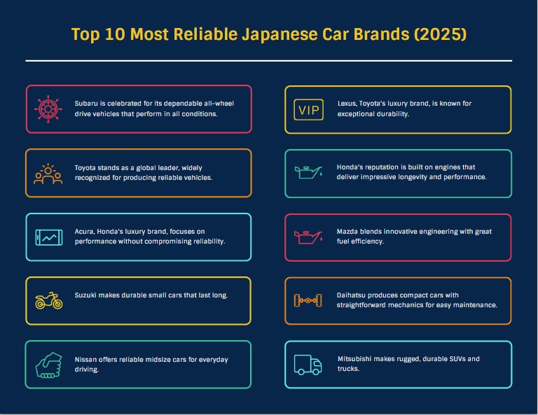 Top 11 Most Reliable Japanese Car Brands (2025)