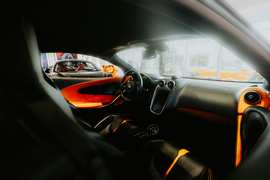La propuesta bitono del interior es lo primero que llama la atención: una combinación de negro y blanco que irradia modernidad y una sensación de amplitud. Este contraste se manifiesta en el techo interior negro, que añade una atmósfera envolvente, y en los asientos bitono (negro y blanco), cuyo diseño no solo es visualmente atractivo, sino que también ofrece un soporte excepcional para viajes largos, evidenciando un compromiso con la ergonomía del conductor y los pasajeros. Las costuras en contraste de color naranja son un detalle sutil pero poderoso, que inyecta un toque de conducción deportiva y energía, evocando la pasión por la velocidad y el diseño. El apoyabrazos central delantero, predominantemente blanco, se convierte en un punto focal que ilumina la cabina, rompiendo la monotonía y reforzando el diseño audaz.