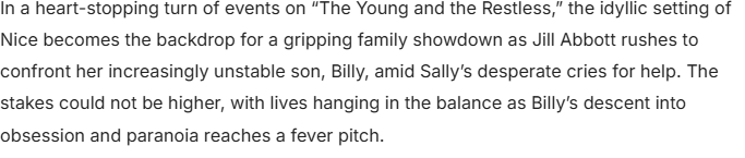Tensions Explode in Nice: Jill’s Urgent Intervention as Billy Spirals into Madness