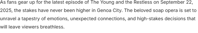 Tensions Rise in Genoa City: The Young and the Restless Delivers Unforgettable Drama