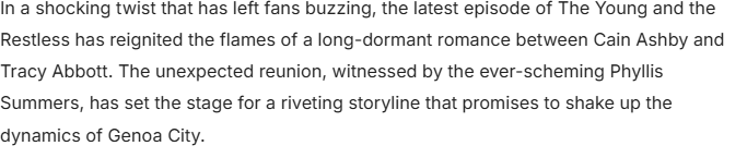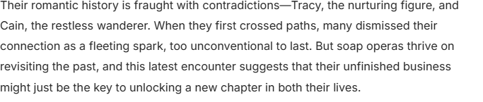 Sparks Fly Again: The Complicated Reunion of Cain and Tracy on Y&R